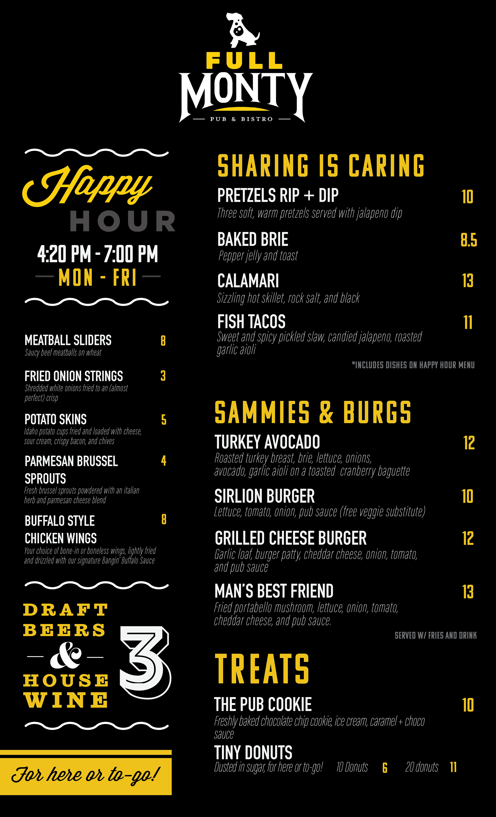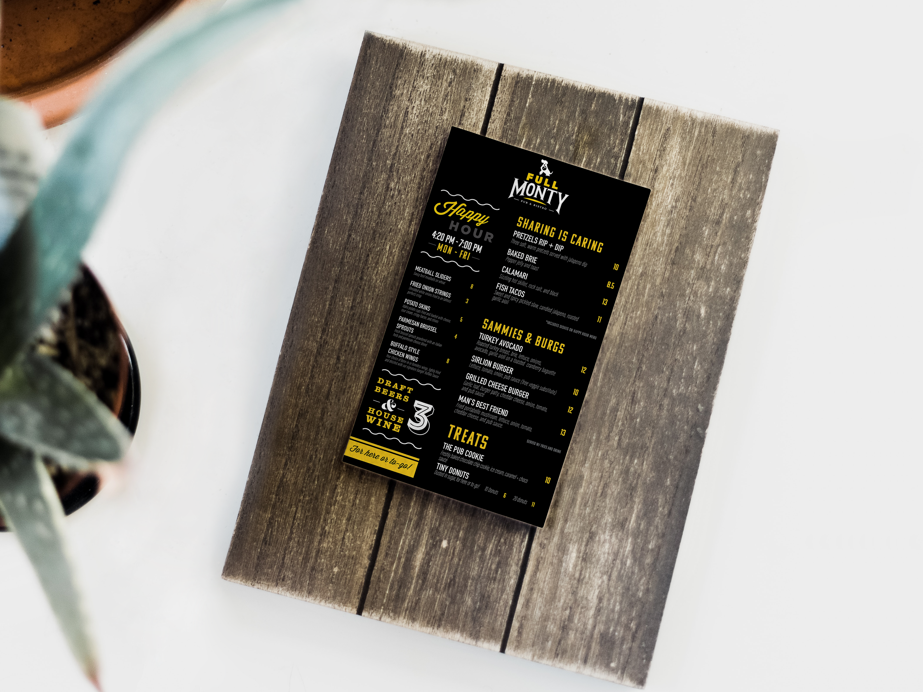 Neighborhood pub menu/logo study. This project features hand lettered type and menu layout practice. Full Monty is a concept based on my dog, Monty, and my love for hole-in-the-wall pubs.